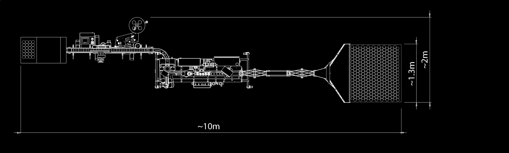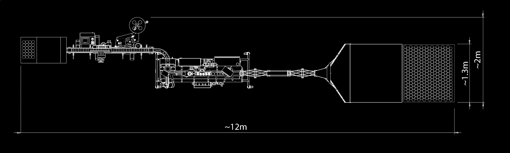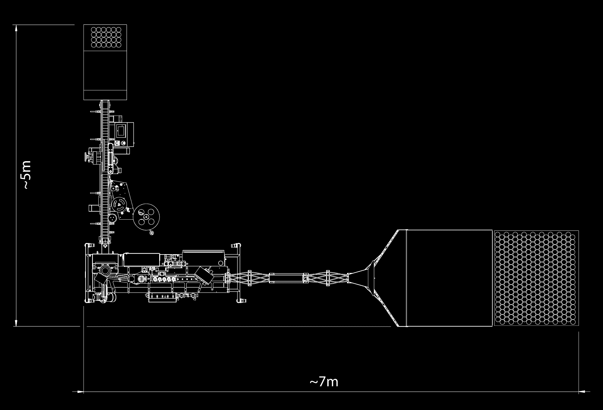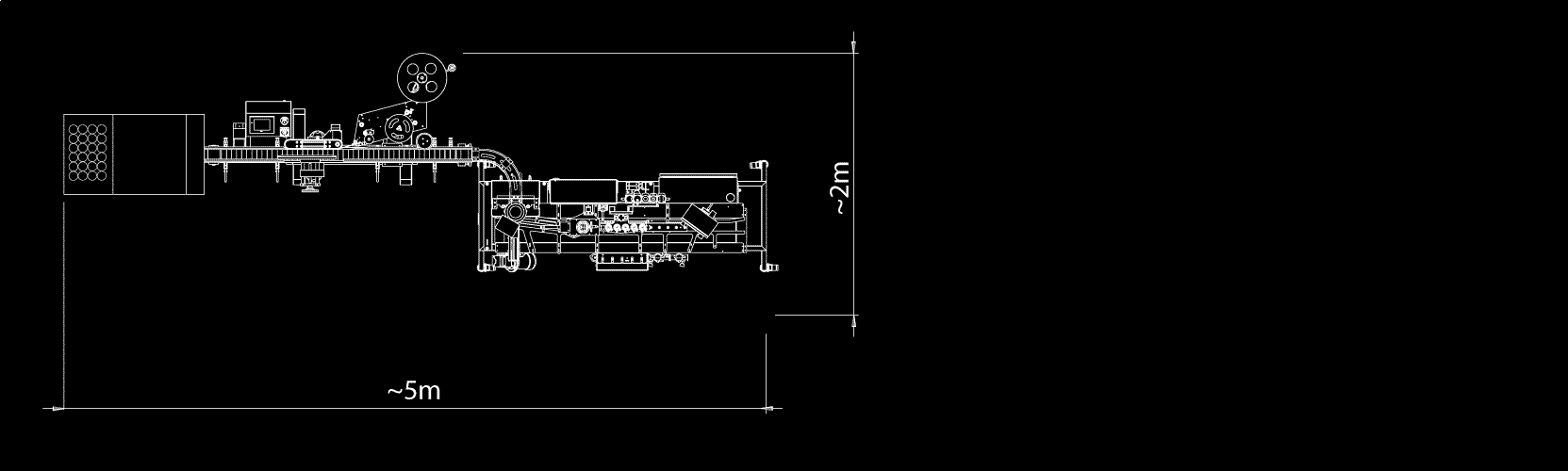 Filling and seaming only, not including the pre-rinse nor labeling machine. Applies to highly restricted spaces or in case we use pre-printed cans. Can be setup with a 90 degree angel as well.